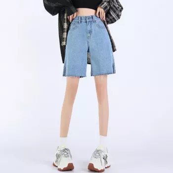 High Waist Grey Knee-Length Shorts with Pockets for Women